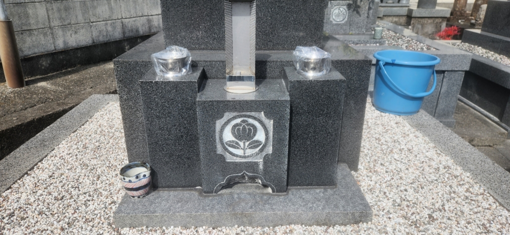松山市内の案件です。家紋にペンキを入れ直しました。 -